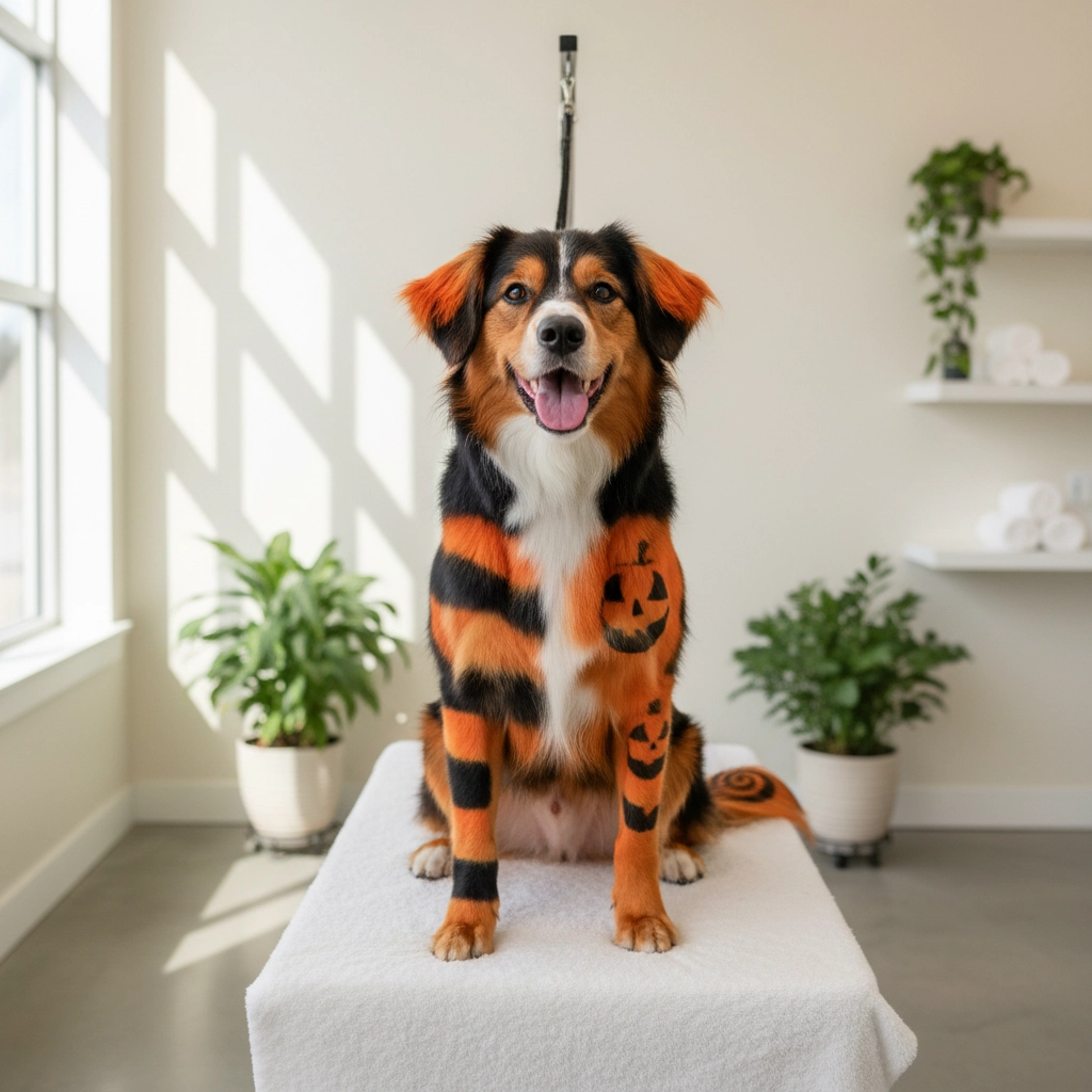 Your groomer can create striking contrast by applying black tips to an orange base or vice versa. For extra drama, consider temporary black "nail polish" (pet-safe) to complete the Halloween look.